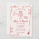 Whimsical Hand Drawn Photo QR Code Red Wedding Invitation
