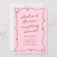 Whimsical Hand Drawn Pink & Red Wedding + Details Invitation