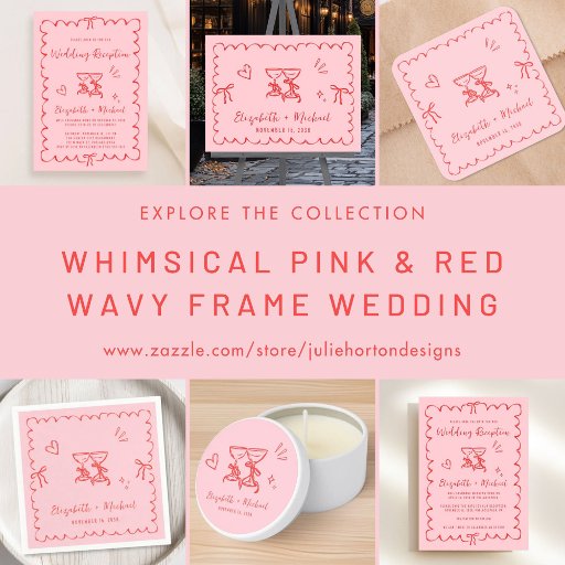 Whimsical Wavy Frame Wine Gasses Pink Red WeddingDesigned by Julie Horton