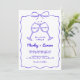Elevate your wedding style with this Whimsical Hand-Drawn Royal Blue Wedding Invitation! Featuring a charming hand-drawn ribbon and bow at the top, two playful wine glass illustrations, and elegant royal blue handwritten script on a crisp white background, this design blends quirky artistry with timeless sophistication. Customise names, dates, and venue details. Available as printed cards (perfect for mailing) or a digital download. Ideal for couples craving a bold, non-traditional invitation that balances whimsy and elegance—perfect for modern, italian, or vintage-inspired weddings!