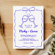 Whimsical Hand Drawn Quirky Royal Blue Wedding Invitation