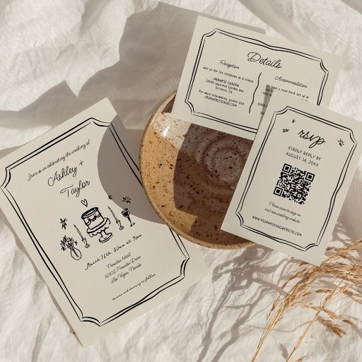 Whimsical Hand Drawn Quirky Wedding Invitation