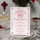 Complete your holiday table with this hand-drawn Christmas dinner menu featuring red illustrations and lettering on a white background. The design showcases a ribbon bow at the top, followed by a festive dinner plate and silverware illustration. “Christmas Dinner” is displayed in a handwritten red script with space below for your custom menu items and date. A flowing red ribbon frame borders the layout, creating an elegant and cohesive look that pairs perfectly with matching invitations from the same collection.