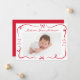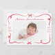 Welcome your little one with this charming birth announcement, featuring hand-drawn red ribbons and bows framing your baby’s horizontal photo on the front. Your baby’s name and birth stats are highlighted in an elegant handwritten script. The back showcases a 3-photo collage with space for your custom message below. The rich red design is perfect for Christmas birth announcements, Valentine’s Day arrivals, or any season when you want to share your joy in style.
