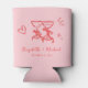 Whimsical Hand Drawn Romantic Pink Red Wedding Can Cooler