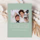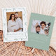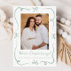 Celebrate your exciting news with this modern pregnancy announcement featuring your vertical photo on the front, framed by hand-drawn sage green ribbons and bows against a white background. “We’re Expecting!” appears in a stylish handwritten sage green script, with room for your baby’s due date and names below. The back showcases a horizontal photo with space for your custom message — perfect for a chic, gender-neutral pregnancy reveal.