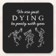 Whimsical Hand Drawn Skeletons Halloween Party Square Paper Coaster