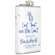 Whimsical modern fun hand drawn last toast on the coast royal blue bachelorette weekend party favour matching decor flask.