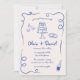 Whimsical Hand Drawn Vintage Photo Blue Wedding Invitation