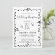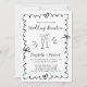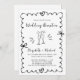 Retro-inspired black and white wedding reception invitation featuring a wavy frame adorned with coquette bows, whimsical hand drawn illustrations of hearts and champagne glasses, and "Wedding Reception" and the names of the bride and groom in a fun, playful script.