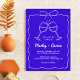 Elevate your wedding style with this Whimsical Hand Lettered Elegant Royal Blue Wedding Invitation! Featuring a charming hand-drawn ribbon and bow at the top, two playful wine glass illustrations, and crisp white handwritten script on a elegant royal blue background, this design blends quirky artistry with timeless sophistication. Customise names, dates, and venue details. Available as printed cards (perfect for mailing) or a digital download. Ideal for couples craving a bold, non-traditional invitation that balances whimsy and elegance—perfect for modern, italian, or vintage-inspired weddings!