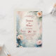 A delicate, hand-painted border featuring an intricate arrangement of ethereal floral patterns, dainty wildflowers, lush greenery, and curled tendrils in soft pastel hues of pale peach, misty blue, and powder pink. Flowing watercolor brushstrokes create a dreamy, romantic ambiance with gentle blurring and subtle texture. The centre remains blank, ready for personalised text in an elegant cursive script. Lace-like details and subtle shimmering accents add a touch of magic, making it perfect for a romantic celebration.
