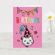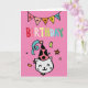 Whimsical hand drawn Birthday card with a cute cat in a party hat! What could be cuter?! You can change the background colour to whatever you like!