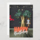 A magically surreal birthday greeting courtesy of the vintage star garland and brunette girl in swing cutouts...the oversized red butterfly, the golden trunk tree and the salmon and white neon "Happy Birthday" text.