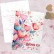 Introducing our beautifully designed customisable flat greeting card, perfect for sending heartfelt messages to your loved ones. The front of the card features a stunning watercolor illustration of heart-shaped balloons in various shades of pink, red, and blue, floating amidst delicate leaves and smaller heart accents. The vibrant and whimsical design is sure to bring a smile to anyone's face. The text on the front reads "SENDING YOU Love" in a playful and elegant font, adding a touch of warmth and affection to your message.