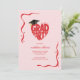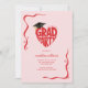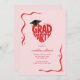 Whimsical wavy lines and fun typography heart with grad party inside make this graduation invitation stand out. The heart has a graduation cap on it. Pretty in pin and red! The wavy lines in the corners are trendy and on point. See coordinating items in our shop, Enchanted Finch.