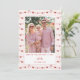 This whimsical valentine's day photo card is the perfect Valentine card to send out showcasing a photo. A whimsical design with a patterned background covered in a red and pink hearts bunting frames a valentine photo, with an editable Happy Valentine's Day message in red serif text.