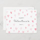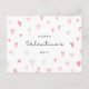 Set against a crisp white background, the pink hearts seem to float whimsically around the text, giving the impression of a gentle flurry of affection. Each heart is unique, some filled with solid colour, others outlined, and a few with sketch-like hatchings, contributing to the handmade feel of the design.This postcard is perfect for sending a sweet note to your Valentine, friends, or family, and is sure to brighten up their day with its enchanting design. The back of the postcard offers ample space for a personal message, making it not just a greeting card but a memorable keepsake.