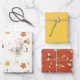 A coordinated 3-piece gift wrap set featuring hand-drawn illustrations. The collection includes a vibrant orange bumblebee pattern, a minimalist yellow honeycomb grid, and a detailed storybook scene with bees, flowers, and honey jars. This high-quality paper set is ideal for spring birthdays, baby showers, and nature-themed celebrations.
