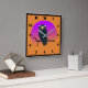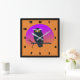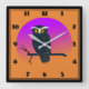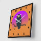 Square acrylic wall clock with a whimsical hoot owl design in purple and orange.