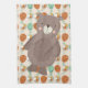Whimsical Hot Air Balloons products for the home, office, and personal use including pillows and body pillows, gift bags, gift boxes, ornaments, serving trays, cheese boards, kitchen towels, wall clocks, ribbon, candy tins, tissue paper, napkins, paper plates, lunch boxes, dog beds, lamps, flasks, and more! Features whimsical hot air balloons in grey, blue, teal, and rusty orange on a soft pink background. Many of these products also have an adorable brown teddy bear!
