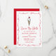 Add a scoop of sweetness to your wedding announcements with this whimsical ice cream cone save the date card. Featuring a hand-drawn ice cream cone topped with a cherry and a playful red swirl frame, this design is perfect for summer weddings, dessert lovers, or couples who shared a first date over ice cream. The nostalgic yet fun layout combines bold script with clean type to highlight your wedding details, while the vibrant red and white colour palette brings a retro-inspired touch. A charming and memorable way to let guests know to mark their calendars for your special day.