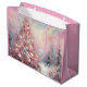 Whimsical Impressionistic Christmas Tree Pink Blue Large Gift Bag
