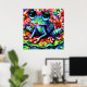 Whimsical Impressionistic Floral Frog Green Blue Poster