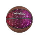 Whimsical iridescent pink Glitter monogram Cute personalised Basketball. It is designed with elegant girly pink, magenta and red glitter.