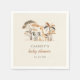 Baby Shower napkins featuring a group of adorable watercolor jungle animals (elephant, giraffe, meerkat and leopard) and trees in earthy tones. Click the "Personalise" button to edit with your own information.
