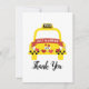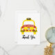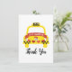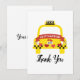 Whimsical yellow taxi cab decorated with "just married" sign and hearts banner in a delightful way to thank guests/wedding contributors/family and friends for participating in your special day. Customizable text in modern script font.