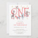 Whimsical unique illustrated typography holiday winter 1st birthday party invitation. A unique whimsical cute collage of painted woodland and safari party animals. A perfect choice for a child's first birthday during the winter holiday season. Unique illustrated style.