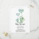 This adorable baby baby boy shower invitation features whimsical mama cat and baby kitten with balloons sported by a cute and quirky typeface.