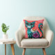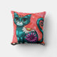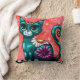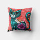 Whimsical Kitty Cat Sitting on Rug Floral Teal Cushion