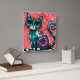 Whimsical Kitty Cat Sitting on Rug Floral Teal