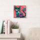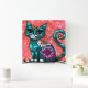 Whimsical Kitty Cat Sitting on Rug Floral Teal Square Wall Clock