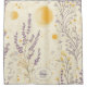 This shower curtain features stylised purple flowers resembling lavender paired with delicate yellow blossoms on fine stems. Set against a light, creamy background, the design is accented with soft yellow-orange circles and scattered speckles, creating a whimsical, painterly effect. With its gentle blend of floral detail and abstract watercolor shapes, the pattern exudes a dreamy, sunlit charm—perfect for spring and summer-inspired designs.