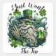Get into the St. Patrick's Day spirit with this "just want the tip" STICKER featuring a mischievous Leprechaun holding a beer, depicted in a vibrant painting.