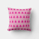 A pattern of hot pink Christmas trees appears on this light pink throw pillow.