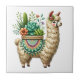 Whimsical Llama and Plants Ceramic Tile