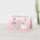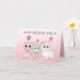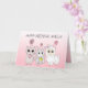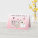 Add a name to this personalized pink llama, kitty cat and little cute mouse girl's birthday card.