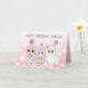 Add a name to this personalised pink llama, kitty cat and little cute mouse girl's birthday card.