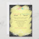 This fun and whimsical grey and white chalk board LOOK wedding invitation has a pair of lovebirds on it in shades of pink and orange and blue and green with a hot pink heart between them. There are a pair of matching fancy ornate white scrolls with a FAUX chalk look yellow background. It is shown here on basic paper. It is easily customised with your own information. There is some customisable text that you can edit the way you require. ALSO, please note that everything will print as it appears on your monitor. Zazzle will not edit anything for typos or mis-alignment etc., and I will not see it once you have ordered it. If you need help with your wording, please email me BEFORE you order. If there are any other items you need to make your event extra special, please email your request to niteowlstudio@gmail.com.