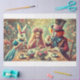 Enter a world of pure imagination with this delicately rendered scene of Wonderland's most famous gathering. Swirling teacups dance through a background of soft clouds and twinkling stars, creating a dreamlike atmosphere perfect for romantic decoupage projects. The artwork features Alice and the Mad Hatter engaged in animated conversation, their expressions full of wonder and mischief. The design seamlessly blends Victorian elegance with whimsical fantasy, making it perfect for adding a touch of magic to any crafting project. Explore more delightful fantasy designs in my Alice In Wonderland tissue paper collection!