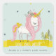 Whimsical Magical Unicorn Pink Aqua Teal Princess Square Sticker