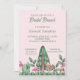 Whimsical Bridal Brunch invitations features bottom border with meadow leaves, trees and mushrooms and customisable text on pale pink background. Back of flat invite has matching mushroom and leaves pattern.