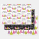 A whimsical and cute wrapping paper set with similar patterns featuring pink, purple, and green trees with "Merry Christmas" text. White and black backgrounds.