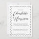 A simple handwritten script modern minimalist black and white typography wedding invitation, with a whimsical wavy border. Available in print, as a digital download, or both.