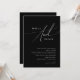 This whimsical minimalist script | black wedding invitation is perfect for your classic simple black and white minimal modern boho wedding. The design features elegant, delicate, and romantic handwritten calligraphy lettering with formal shabby chic typography. The look will go well with any wedding season: spring, summer, fall, or winter! The product is editable and has plenty of blank space, so you can add your own graphics or pictures if you want to customise it! Please feel free to reach out with any questions regarding the product's design; we are happy to help!