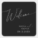 Whimsical Minimalist Script Black Wedding Welcome Square Sticker